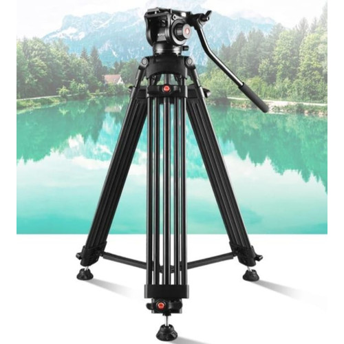 Tripod ini terbuat dari material aluminium paduan (Al-Mg alloy), yang memberikan kekuatan dan daya tahan untuk penggunaan jangka panjang. Desain kepala menggunakan platform hidrolik tiga dimensi (fluid head), yang menawarkan kemudahan dalam pengaturan posisi kamera secara halus dan stabil. Fitur tambahan seperti sistem pelepasan cepat yang aman, pegangan teleskopik yang dapat dipasang di sisi kiri atau kanan untuk kenyamanan saat melakukan pan/tilt, serta bubble level untuk membantu penyesuaian posisi horizontal menjadikannya lebih praktis dan mudah digunakan. Ditambah lagi, tripod ini memiliki pengait teleskopik di bagian bawah dudukan untuk menambah stabilitas.